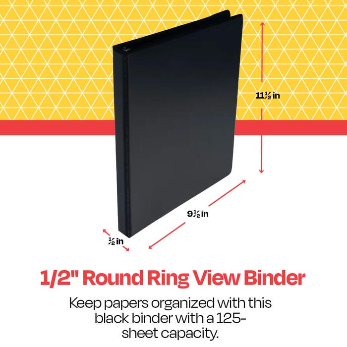 • Black O Ring View Binder, 1/2 Inch