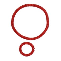 Chewlery is a great way to keep kids from chewing on their clothes, fingernails, or other inappropriate items while letting them work through chewing tendencies. It's also great for oral-motor stimulating activities. This two-piece set of non-toxic, colorful, plastic jewelry includes a 2-1/4 inch (6cm) diameter red bracelet and a 6-1/4 inch (16cm) diameter red necklace.Features