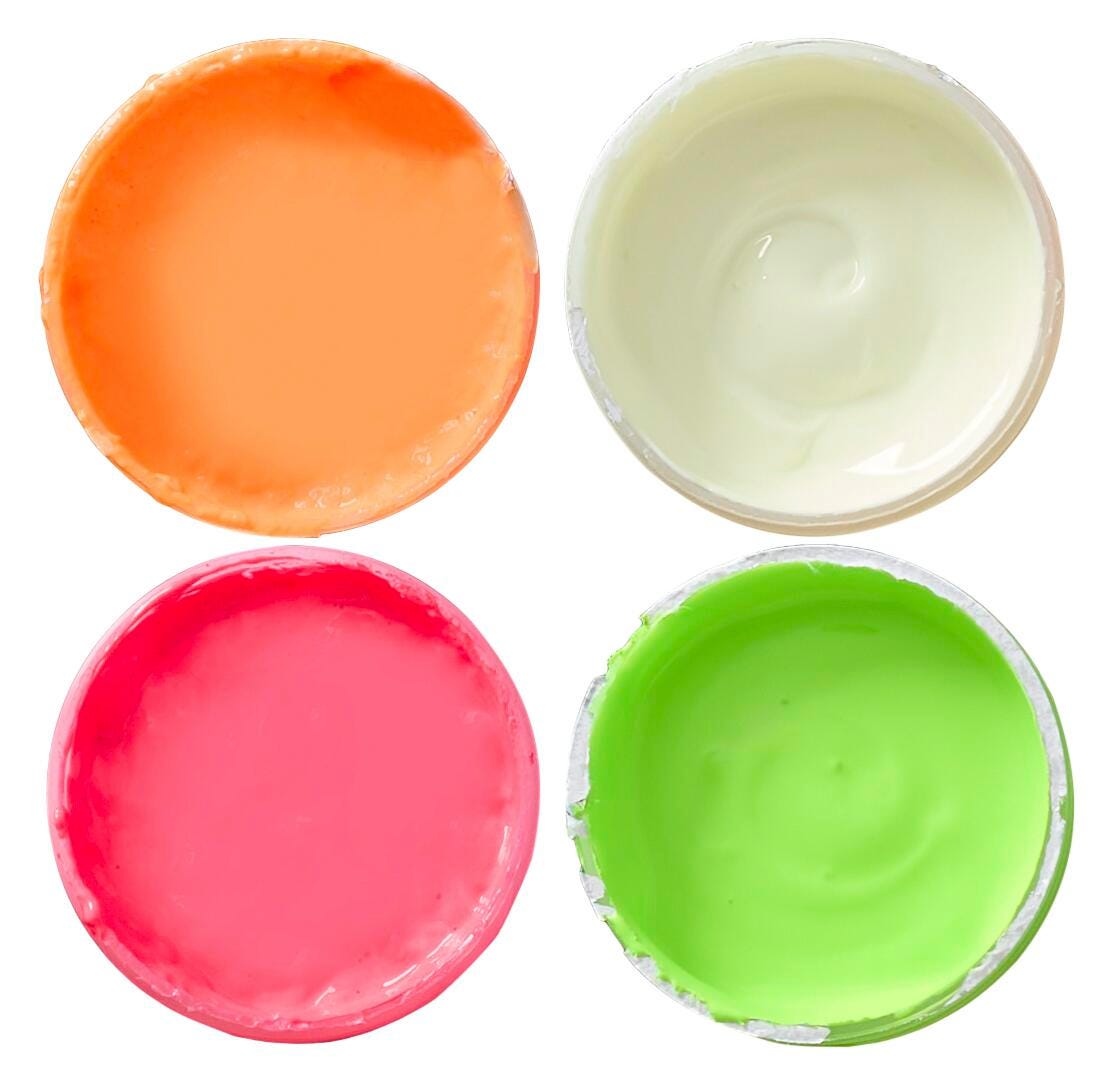 Bring bold and bright colors to your screen printing projects with this set of 4 fluorescent inks.