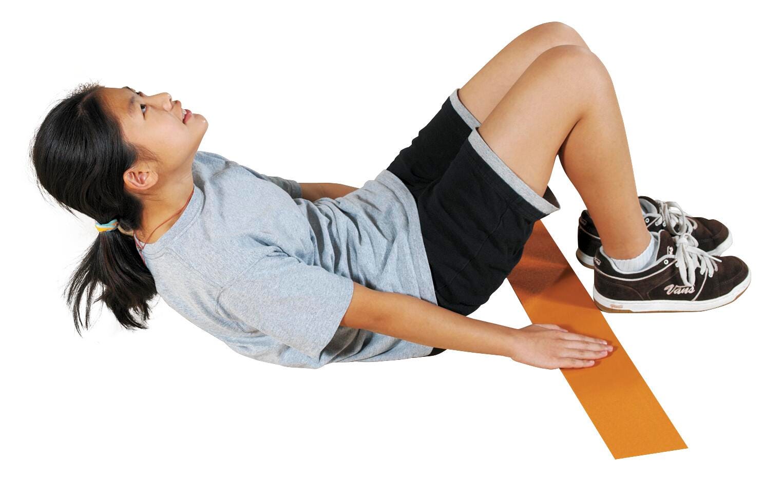 Sportime CrunchStrips help with the one primary component of the numerous health-related youth fitness tests in use is a measure of abdominal strength and endurance. The curl-up or crunch has been adopted because it provides a non-biased measurement that is easily performed in a large group setting. Just need to lay this strip on the floor and position the child accordingly. as they curl upward - and stretch their flattened hand on the floor - you measure how close they get to the strip.