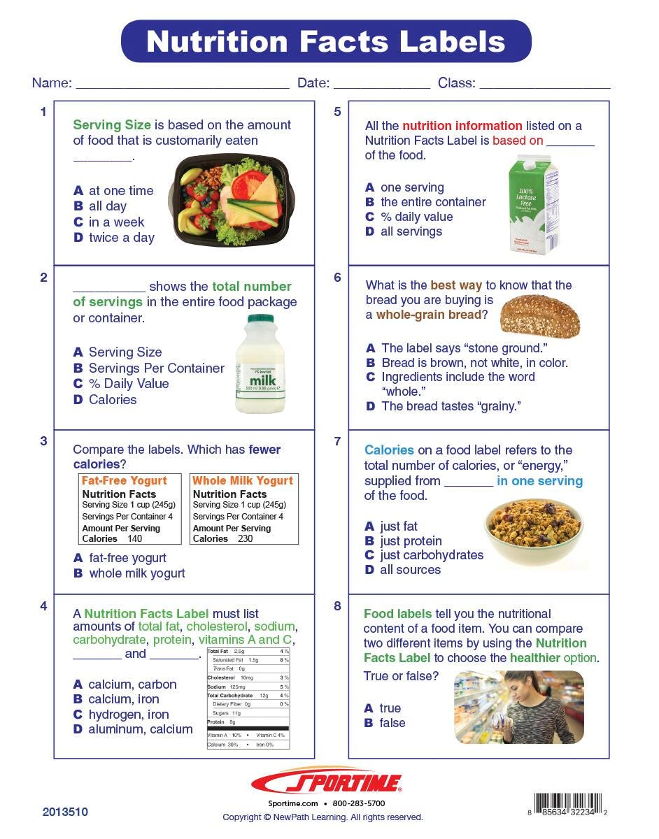 • Food labels learning guide is an excellent nutrition education teaching aid to use alone or conjoined with other MyPlate or food-related Sportime Visual Learning Guides (sold separately)