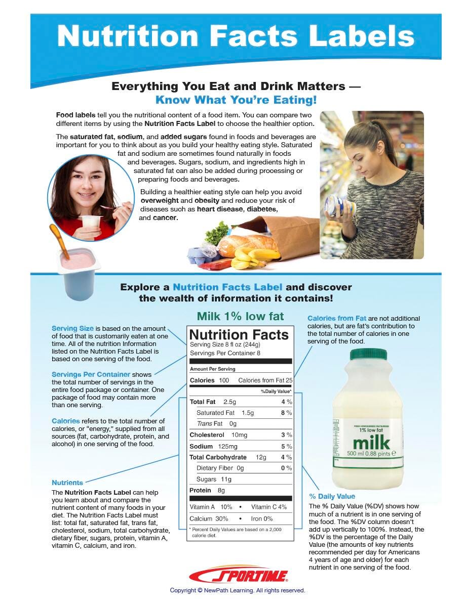 • Sportime Food Nutrition Facts Visual Learning Guide, 4 Pages, Grades 5 to 9