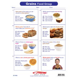 Fill up on the learning 'goods' with this laminated 4-page grains food group guide! The inside combines informational facts, realistic food/beverage images, and fun game-like activities to aid with retention and engagement.