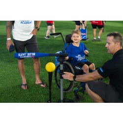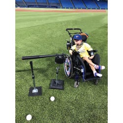 This unique adapted sports equipment allows users with limited motor abilities and/or visual impairments to swing, throw and strike any number of lightweight sport or gaming attachments.