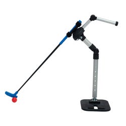 Use this unique adapted sports apparatus to play baseball, tennis, hockey, golf, lacrosse, cricket and more. This inclusive experience promotes independence, increases user success, builds positive self-esteem and supports overall well-being. Perfectly designed for portability, easy setup, storage and versatility! Specifically created for use with lightweight/plastic sports equipment indoors and out. Easily adjust from 24.5” to 33.5” in height to meet any user’s size and age. Product weight: 13 lbs.Features