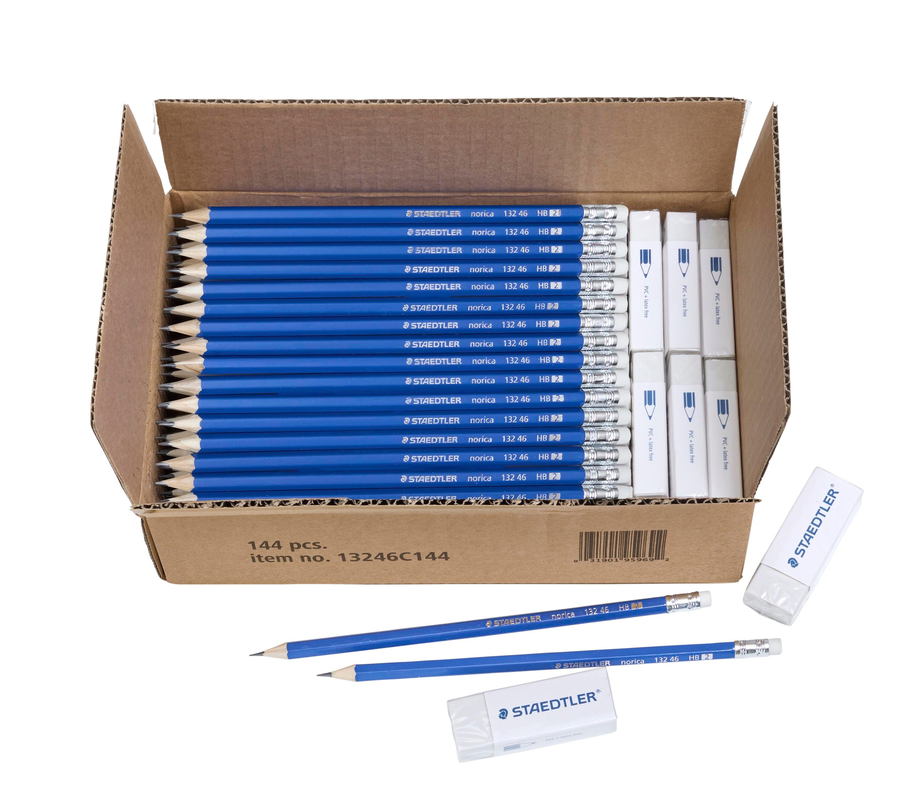 Staedtler Norica Pencils and Erasers, No 2 HB, Pre-sharpened, Pack of 156