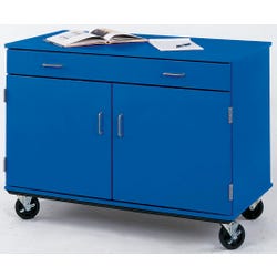 Storage on the move! Flexible classroom storage with full-width top drawer. Large bottom storage area with doors has a full-width adjustable shelf.
