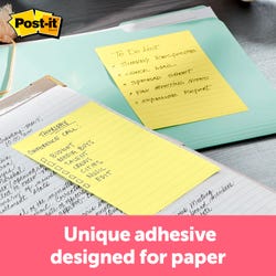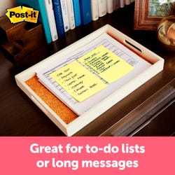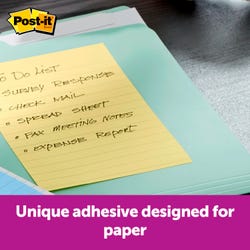 Post-it Super Sticky Notes Stick Practically Anywhere! Revolutionary adhesive technology ensures your notes will stick securely to more surfaces. Now you can stick your notes where they will really get noticed...like monitors, doors and walls! The 4 x 6 inch note size is ideal for longer to-do lists and the lines will help to keep everything straight! Trust Canary Yellow, the most familiar color, with your most important messages.Features