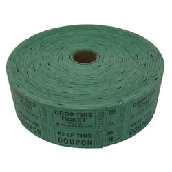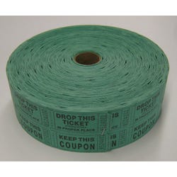 School Specialty Double Roll Green Ticket is consecutively numbered. Measures 2 x 2 inches. These double roll tickets have room on back for name and address. Printed on each ticket is "Drop This Ticket in Proper Place" on one side and "Keep This Coupon" on the other. Sold as 2000 per pack.Features