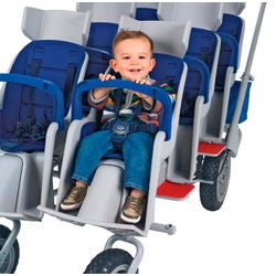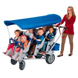 Perfect for play dates or small day cares, this stroller safely lets up to 6 passengers explore the world with you!