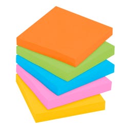 Super sticky notes hold stronger than the original Post-it notes and the adhesive is made with 67% plant-based material by weight. They are ideal for vertical and hard-to-stick surfaces like doors and walls, yet removes and repositions easily. The paper is sourced from certified, renewable and responsibly managed forests and is recyclable. Each Post-it sheet measures 3 x 3 inches.Dozen Pack of Ninety-Sheet Sticky Pads Include Two of Each Color: