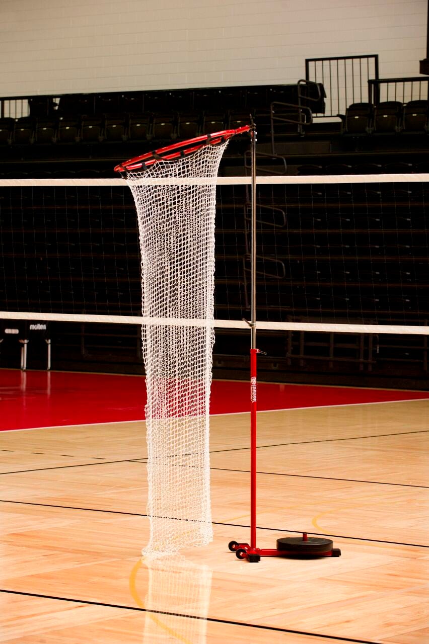 Adjustable pole height and target ring allow for multi-purpose use to accommodate any sport. Sturdy net collects balls for easy retrieval. Includes 22 lb weight for stability and base comes with 2 wheels for easy portability. Adjustable to 12 feet, target ring measures 30 inches in diameter. Ideal for passing, setting, or shooting.Features