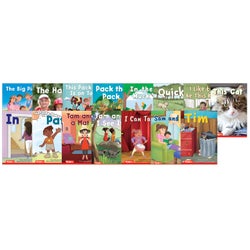 This fun and memorable Prekindergarten/Kindergarten set includes sequenced decodable books, #1–#15. Five books in this set are text-first books, offering decoding practice without illustrated clues first, then the text is repeated on the next spread with pictures. Each book includes a helpful family engagement page plus the phonics focus and high-frequency words learned. This set aligns with the Science of Reading and Structured Literacy. Titles include: In, Tam and a Mat, Tam and I See It, Pat, I Can Tap, Sam and I, Tim, This Cat, The Big Pig, The Hat, This Pack Is on Top, Pack the Pack, In the Muck, Quick, and I Like to Be This Kid.Features