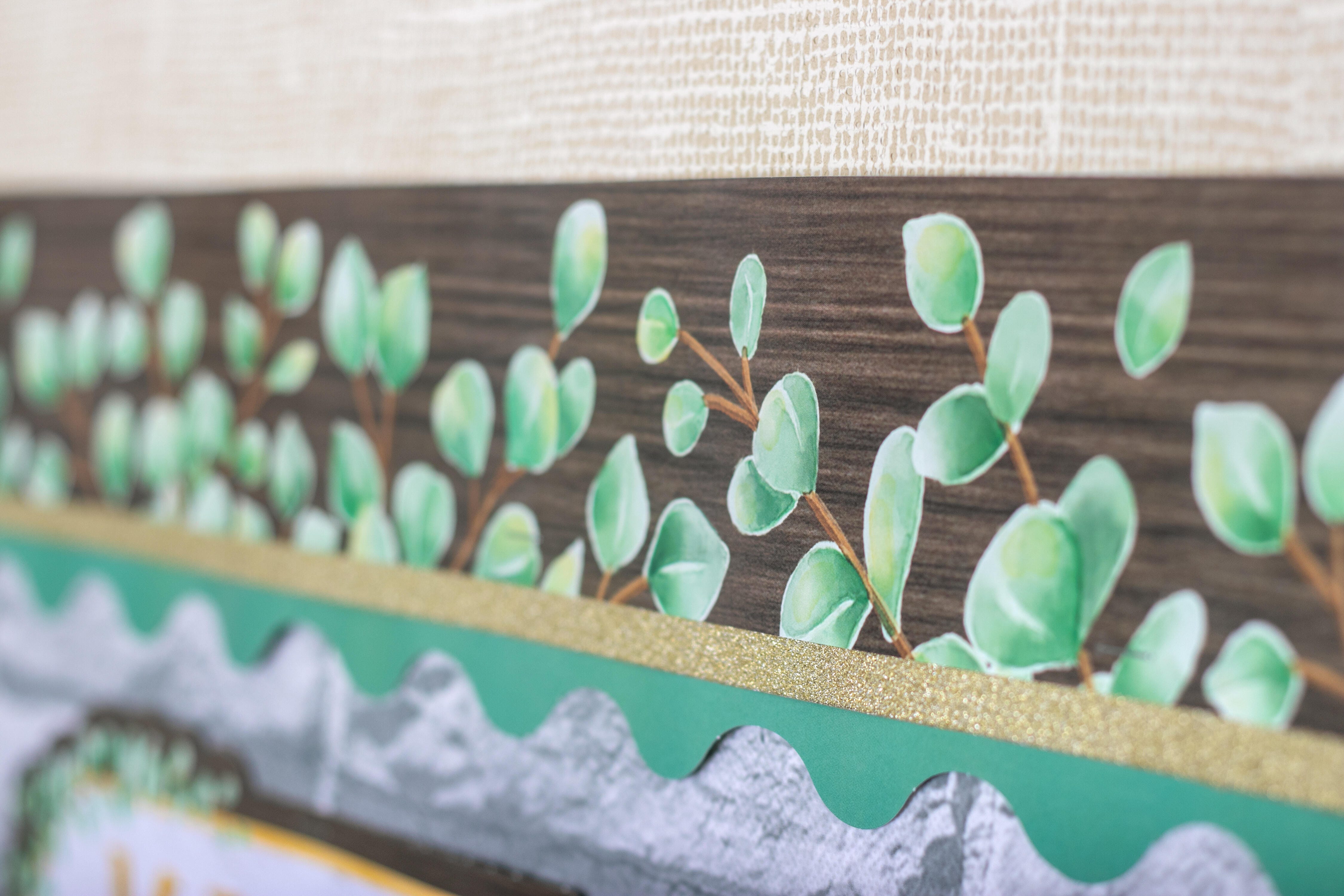 50 foot continuous roll of vibrant border trim made of durable paper. Cut each border to your desired length.