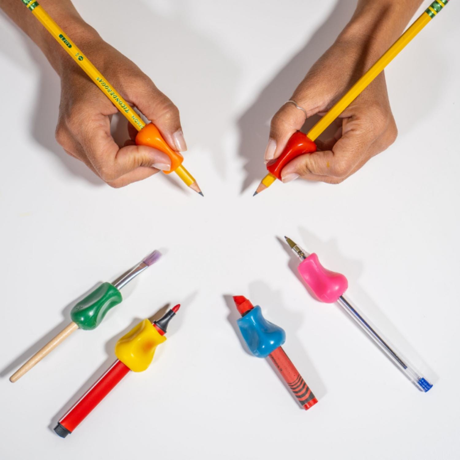 The Standard Pencil Grip from Pencil Grip Inc. is designed with revolutionary applied technology that works with the body's natural physiology to gently place fingers in the proper position for gripping. The unique shape creates a one-size-fits-all grip that can work for right-handed and left-handed writers. Works with a variety of writing tools including pencils, pens, crayons, and more. These grips are latex and phthalate-free. Colors may vary.