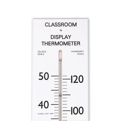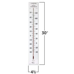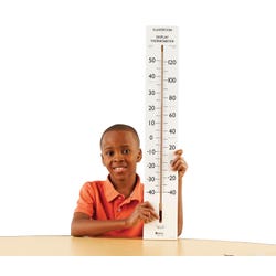 Learning Resources Giant Classroom Thermometer shows both Celsius and Fahrenheit scales from -40 C to 50 C degrees and -40 F to 120 F degrees. This wall-mountable thermometer features a wooden frame and measures 30 inches in height. Recommended for Grades K and above and Ages 5 and up.Features