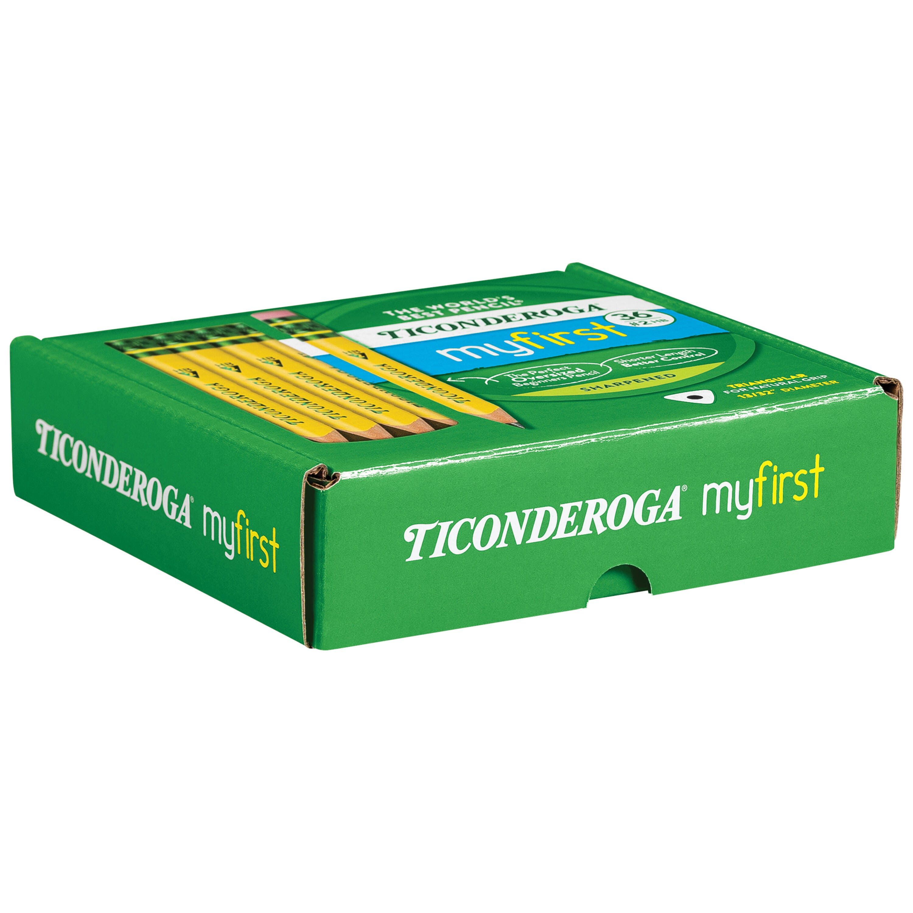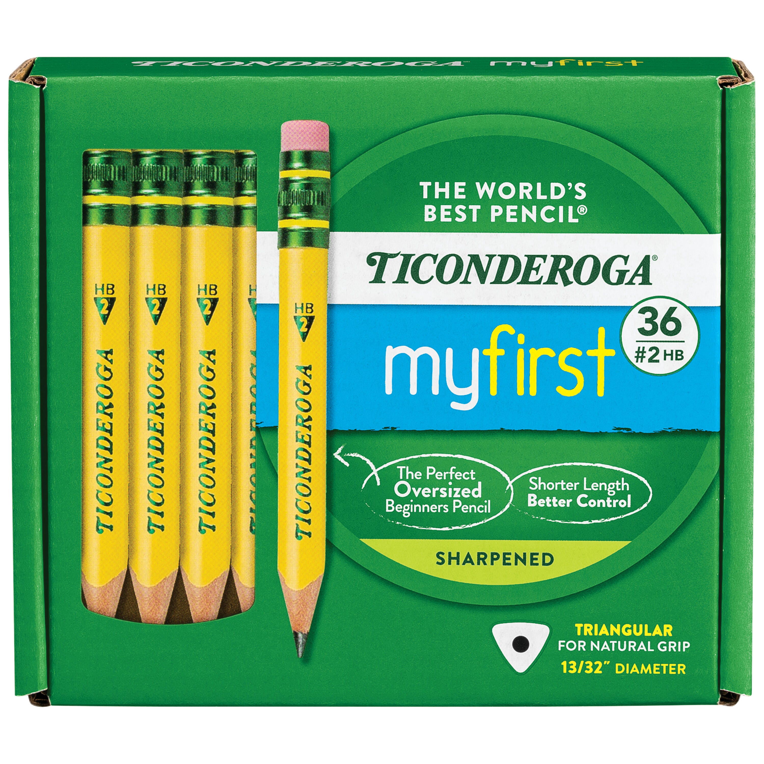 Ticonderoga My First short length (4-1/2 inch) pencils deliver better control and promote a more natural grip as recognized essential by experts in early learning handwriting. The large diameter (13/32 inch) reduces writing fatigue and the triangular shape promotes the correct 3 finger grip. Premium wood harvested from responsibly managed sources provides smooth, even sharpening with minimal breakage. Teachers prefer Ticonderoga brand for its dependability and craftmanship. All Ticonderoga pencils are PMA certified so you can use them with confidence.