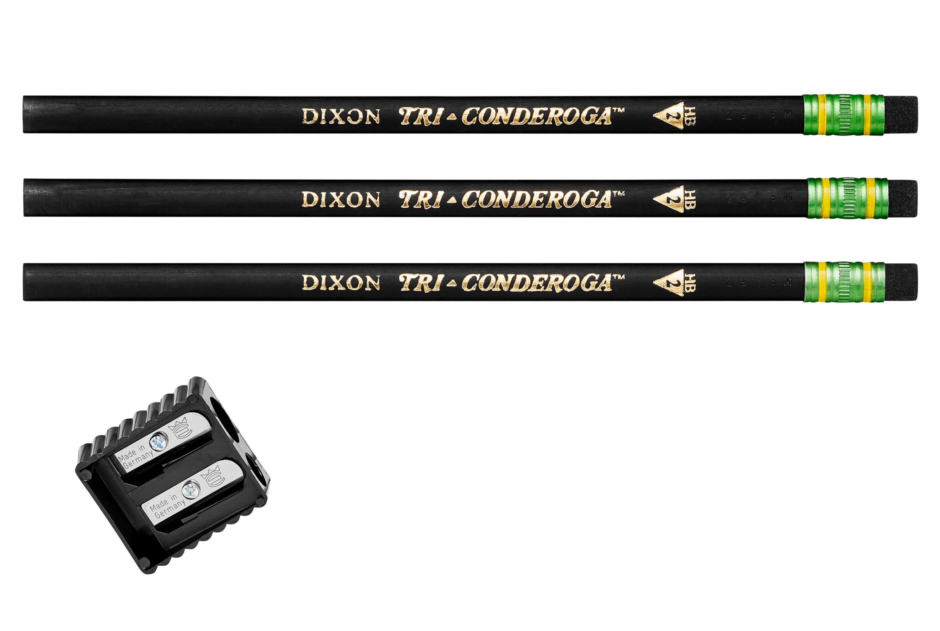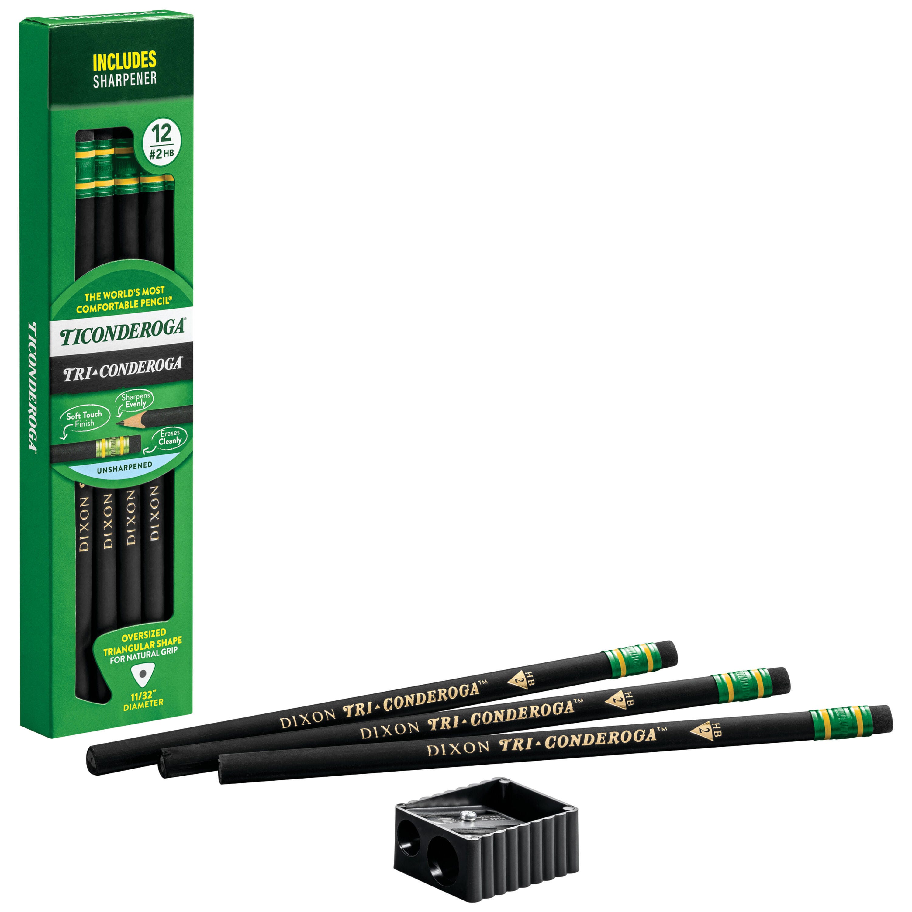 The Tri-Conderoga No 2 Black Pencils offer the unmatched performance of Ticonderoga pencils with an ergonomic and sleek design. These pencils feature a "soft-touch" finish, a larger diameter (11/32 inch), and a triangular shape to deliver exceptional comfort while writing. Each pencil is made of premium wood that allows easy sharpening and features an exclusive graphite formula that provides smooth, consistent marks. The triangular shape positions fingers for a proper pencil grip, making them a great tool for beginners. This pack comes with a bonus large-diameter pencil sharpener so you have everything you need to get started.Features