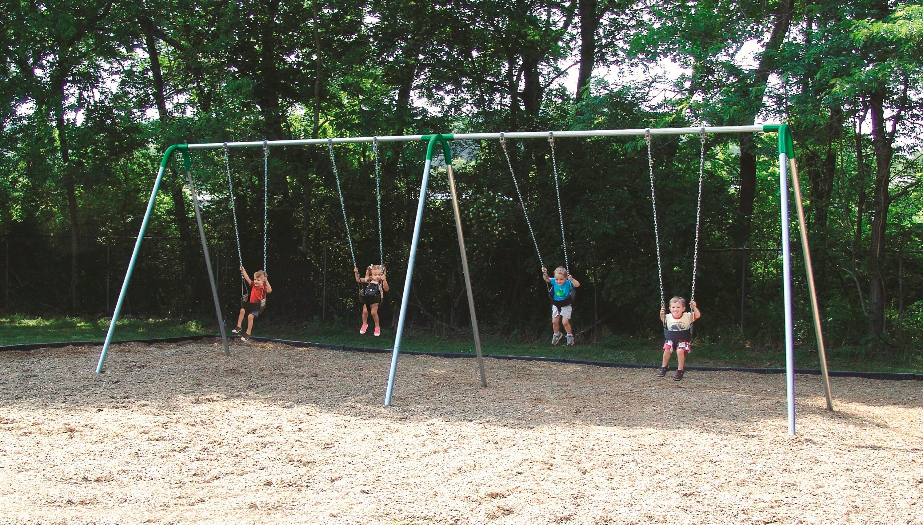 - Hold swings steady with 2-3/8 inch galvanized pipe top rail, supported by 2-3/8 inch diameter legs