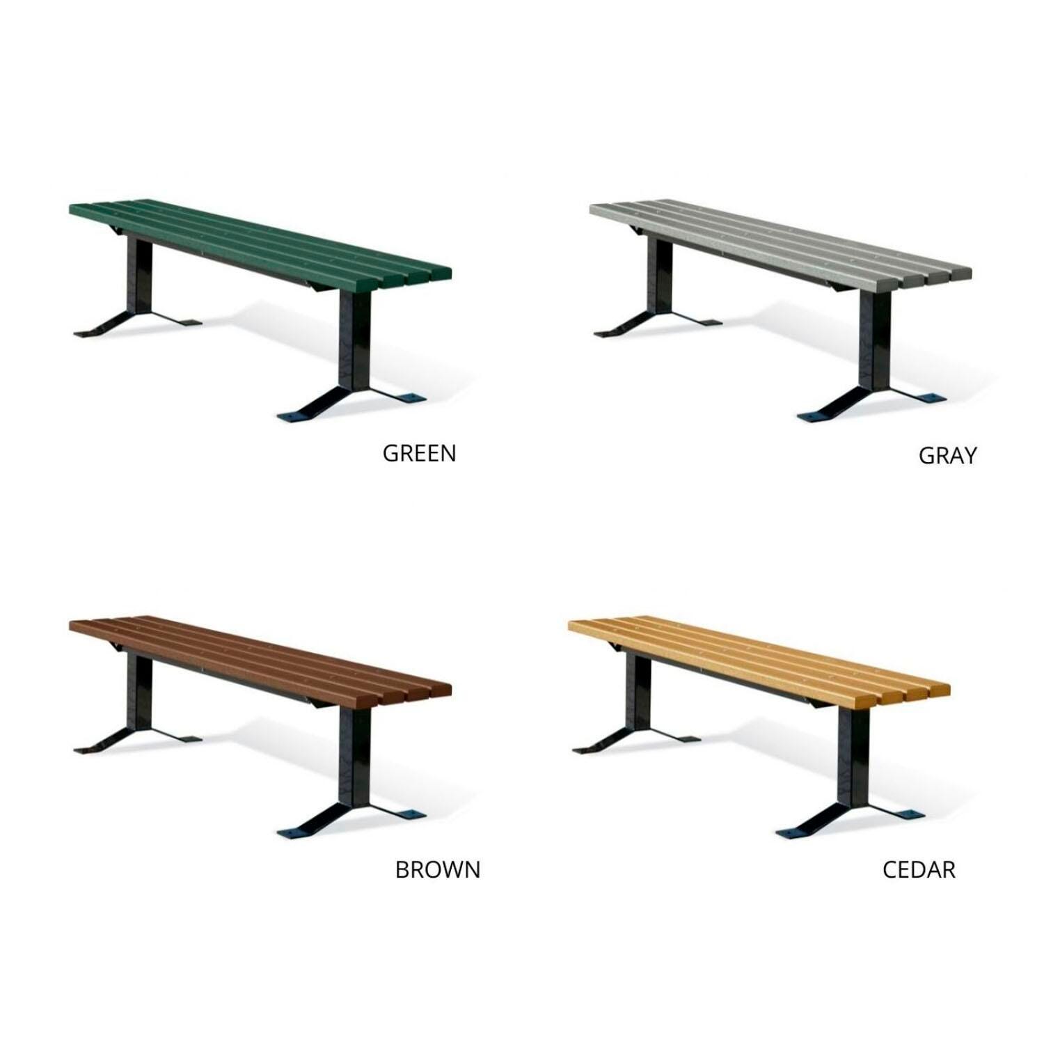 This 952 Series 3 x 4 Recycled Plastic Bench without Back is the perfect, nature-inspired addition to your outdoor recreational space. This UltraSite bench with no back is constructed from recycled plastic planks for an environmentally friendly seating solution, and constructed from a powder-coated finished steel frame for long-lasting durability even in high-traffic areas. This bench is available as a surface or in-ground mount, depending on your outdoor space's needs. The seat height is 18 inches. Some assembly is required.Features