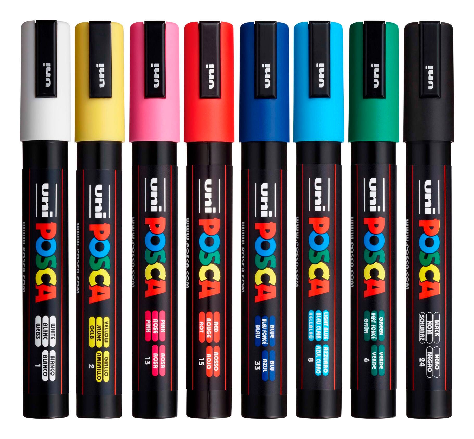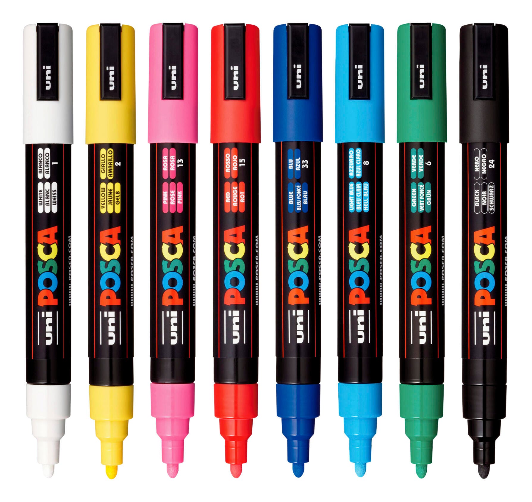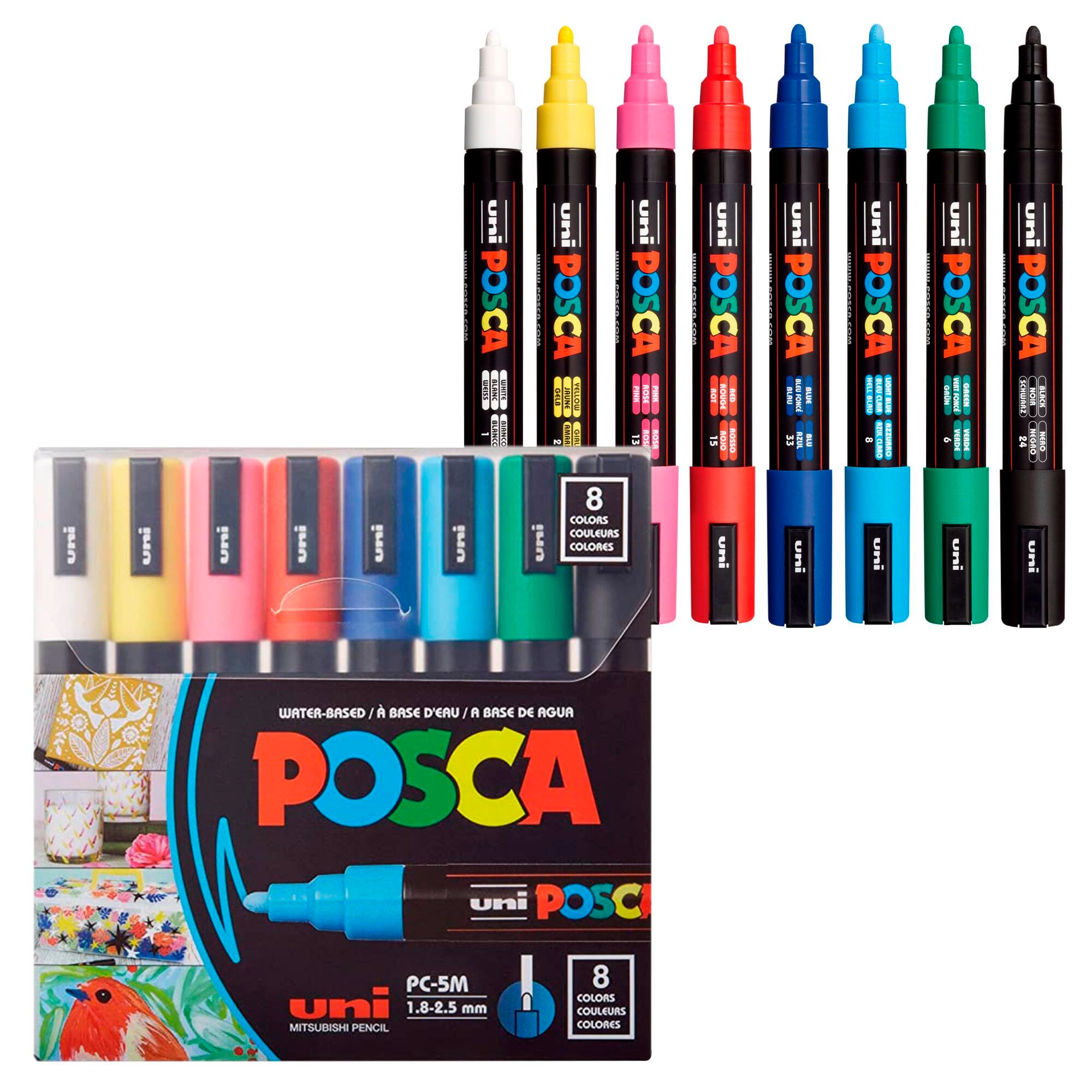The uniball POSCA PC-5M medium 1.8-2.5mm tip is reversible, always ensuring a clear, precise paint line and beautiful color. The PC-5M marker suits all types of users from artists and creative professionals to hobbyists and decorators to surfers and skaters! Everyday creatives and budding artists use this paint marker for coloring, line drawing and ornamentation on a multitude of surfaces. Its ease of use makes this paint marker ideal for beginners to explore their creativity. Available in fluorescent and metallic, the PC-5M offers the widest variety of paint color options in the POSCA range.
