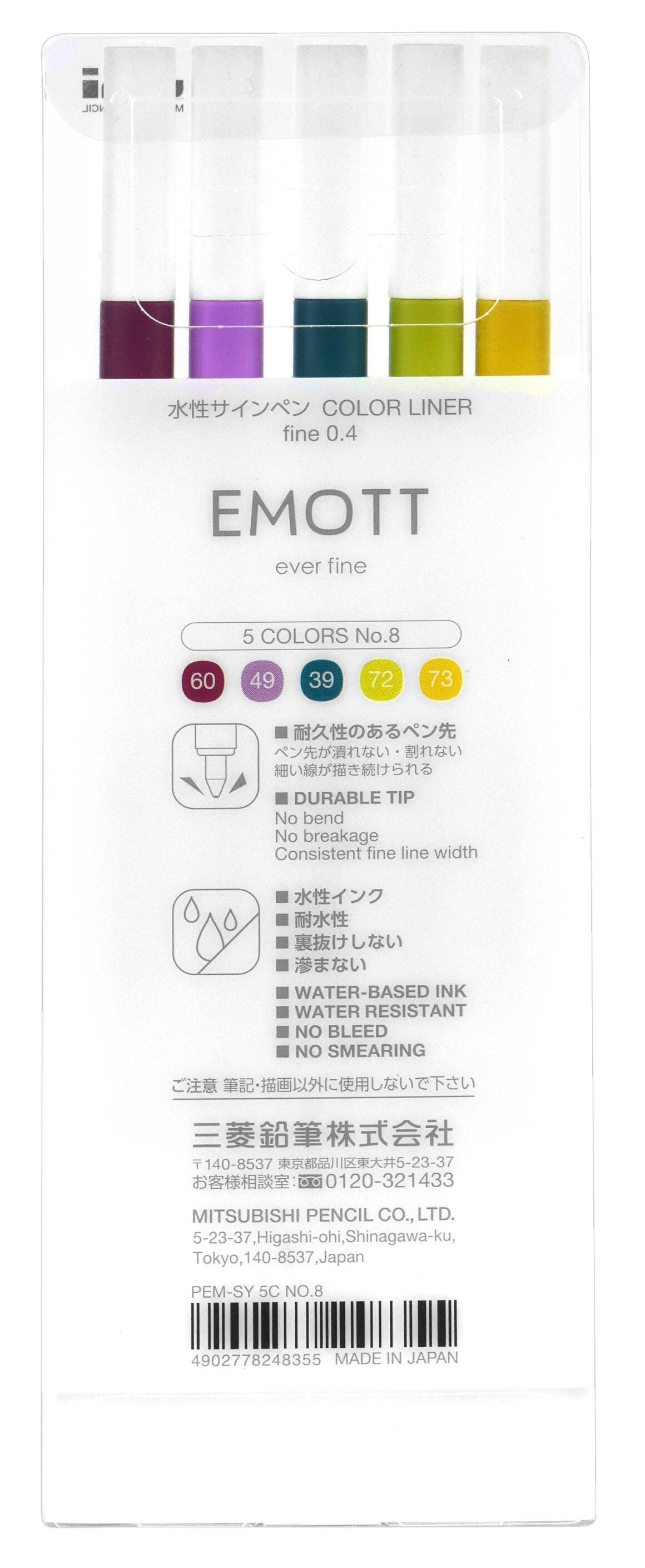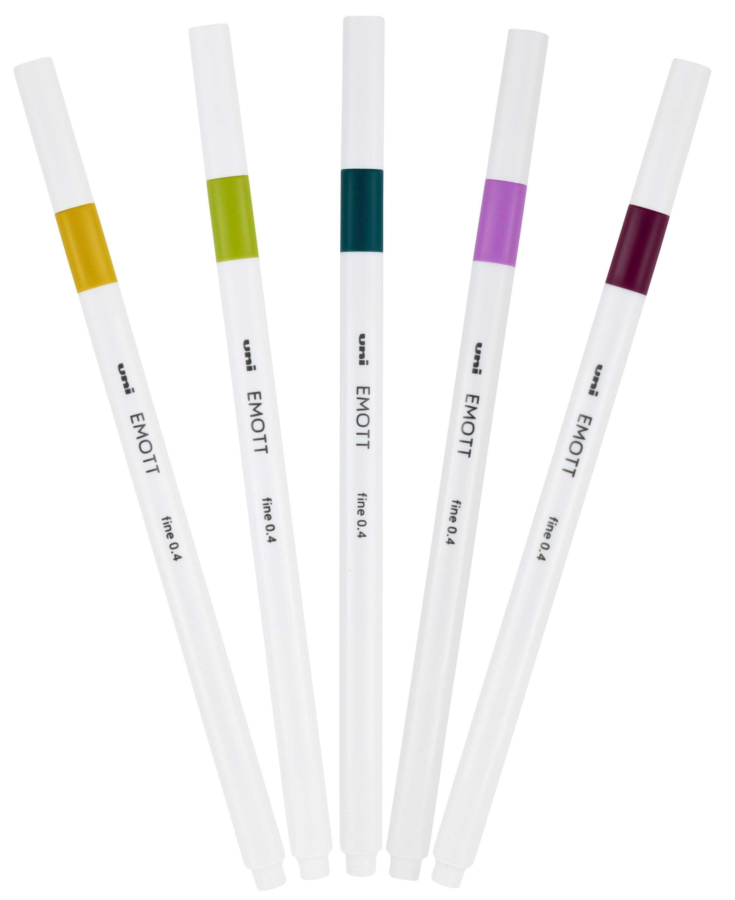 uni EMOTT Fineliner Marker Pen, 0.4 mm, Assorted Retro Colors, Set of 5