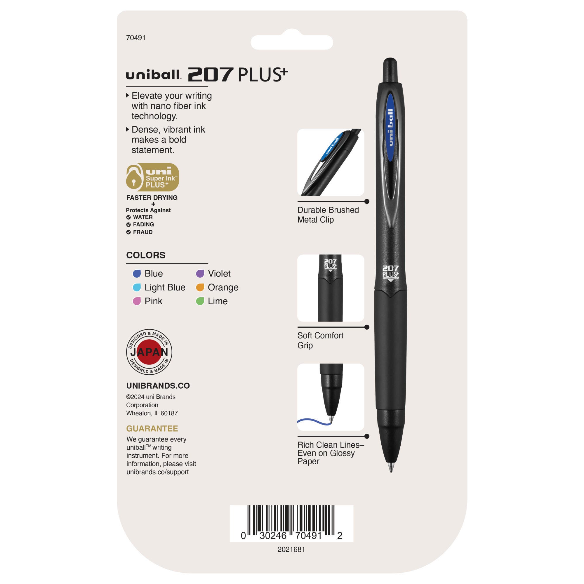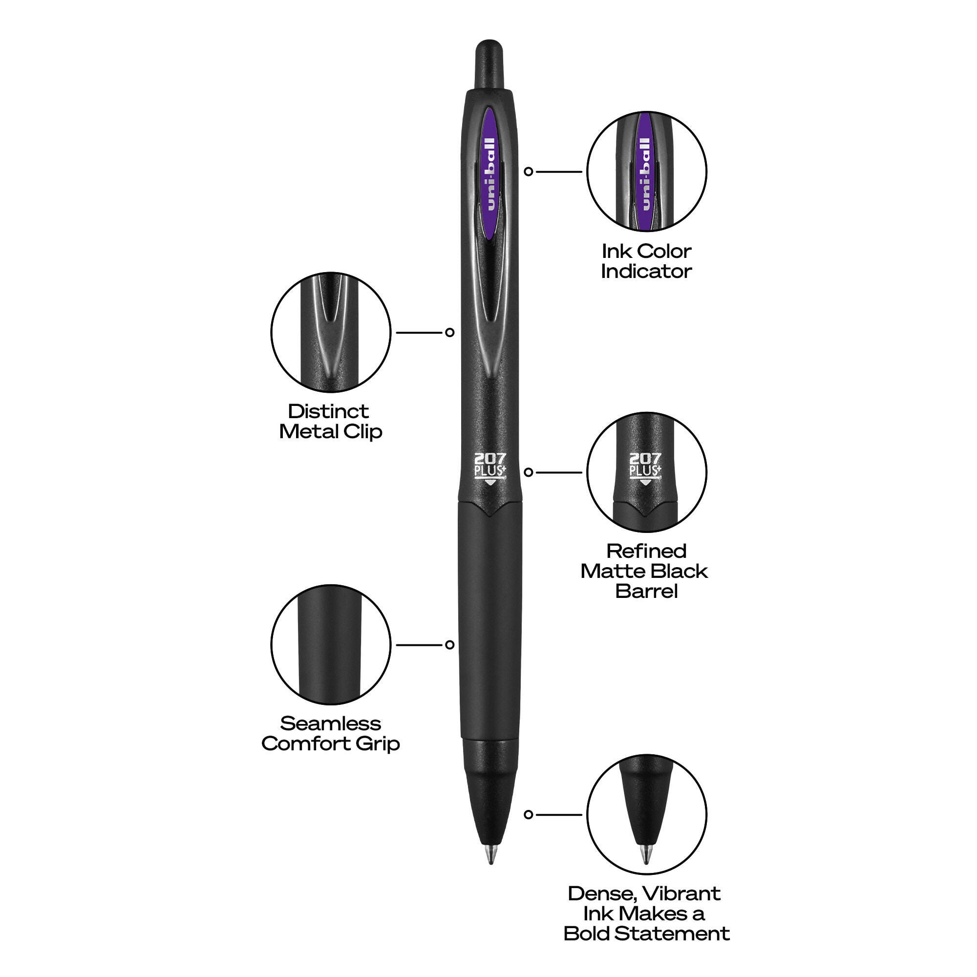Take your writing to new heights with 207 Plus+. Advanced ink produces an enhanced writing experience with exceptional smoothness, drying speed and line intensity. uni Super Ink PLUS+ protects against water, fading and fraud. Seamless rubber for a comfortable hold with precise control. Produces rich, clean lines with superior smoothness, drying speed and line intensity