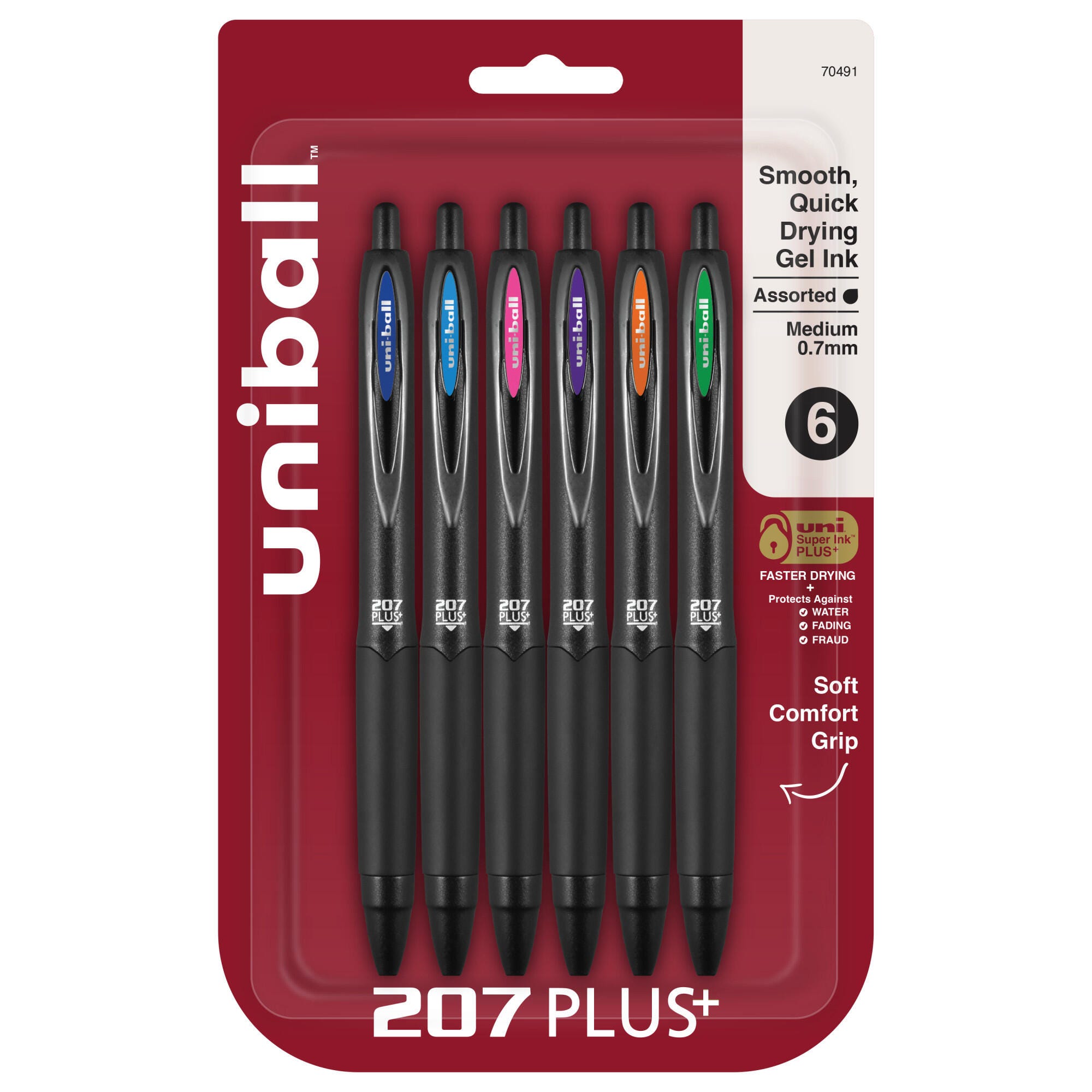 uniball 207 PLUS+, 0.7 mm, Assorted Fashion Colors, Set of 6