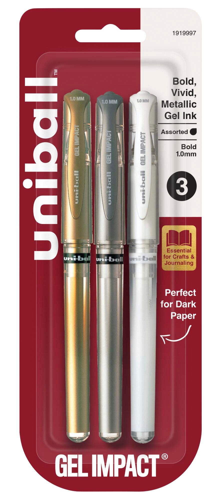 uniball Gel Impact Metallic Stick Pens, 1.0 mm Bold Tip, Assorted Colors, Set of 3