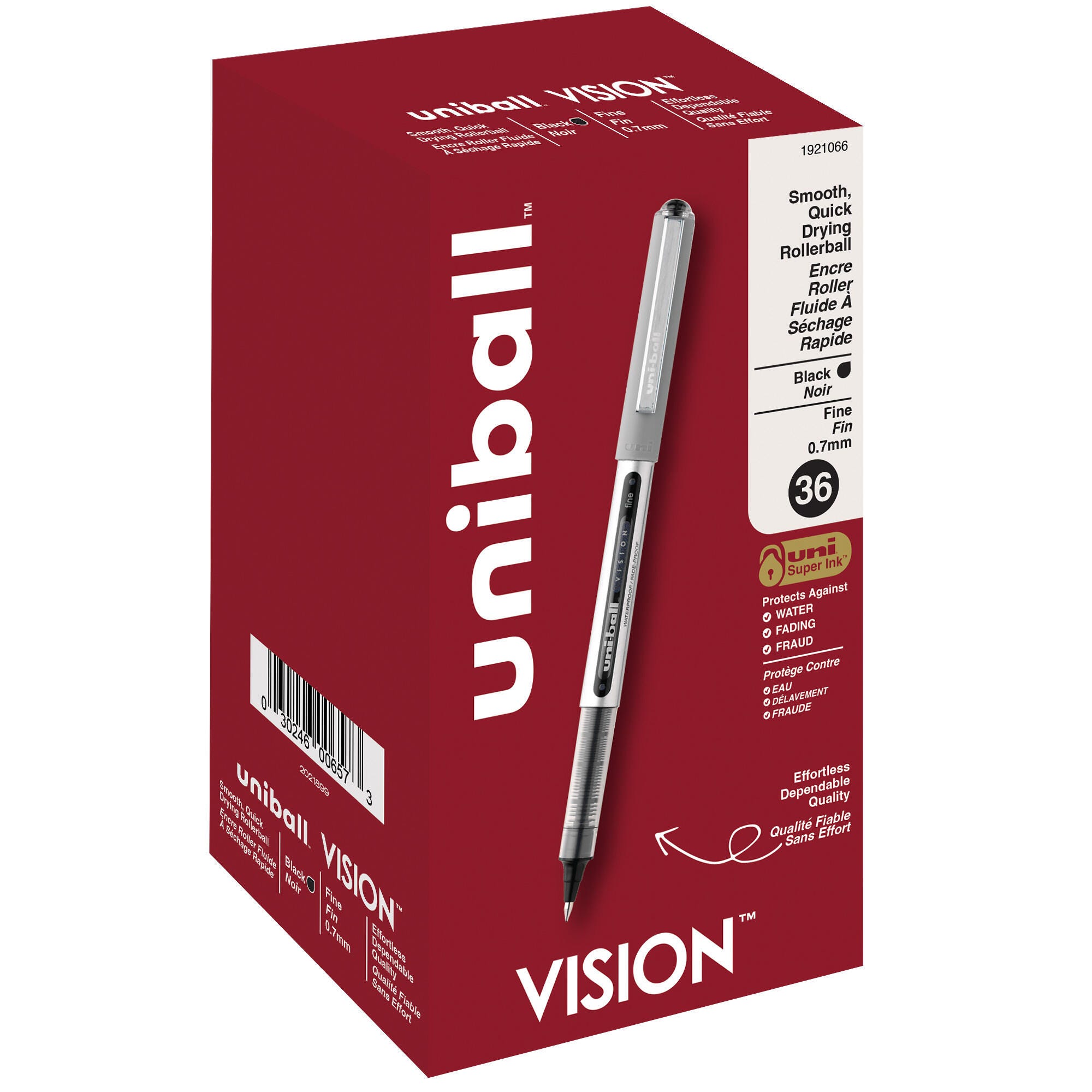 uniball Vision Stick Roller Ball Pens, 0.7 mm Fine Tip, Black, Pack of 36
