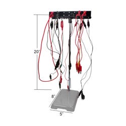 - Holds 14 Banana plug cords and approximately 18 alligator clip cords
