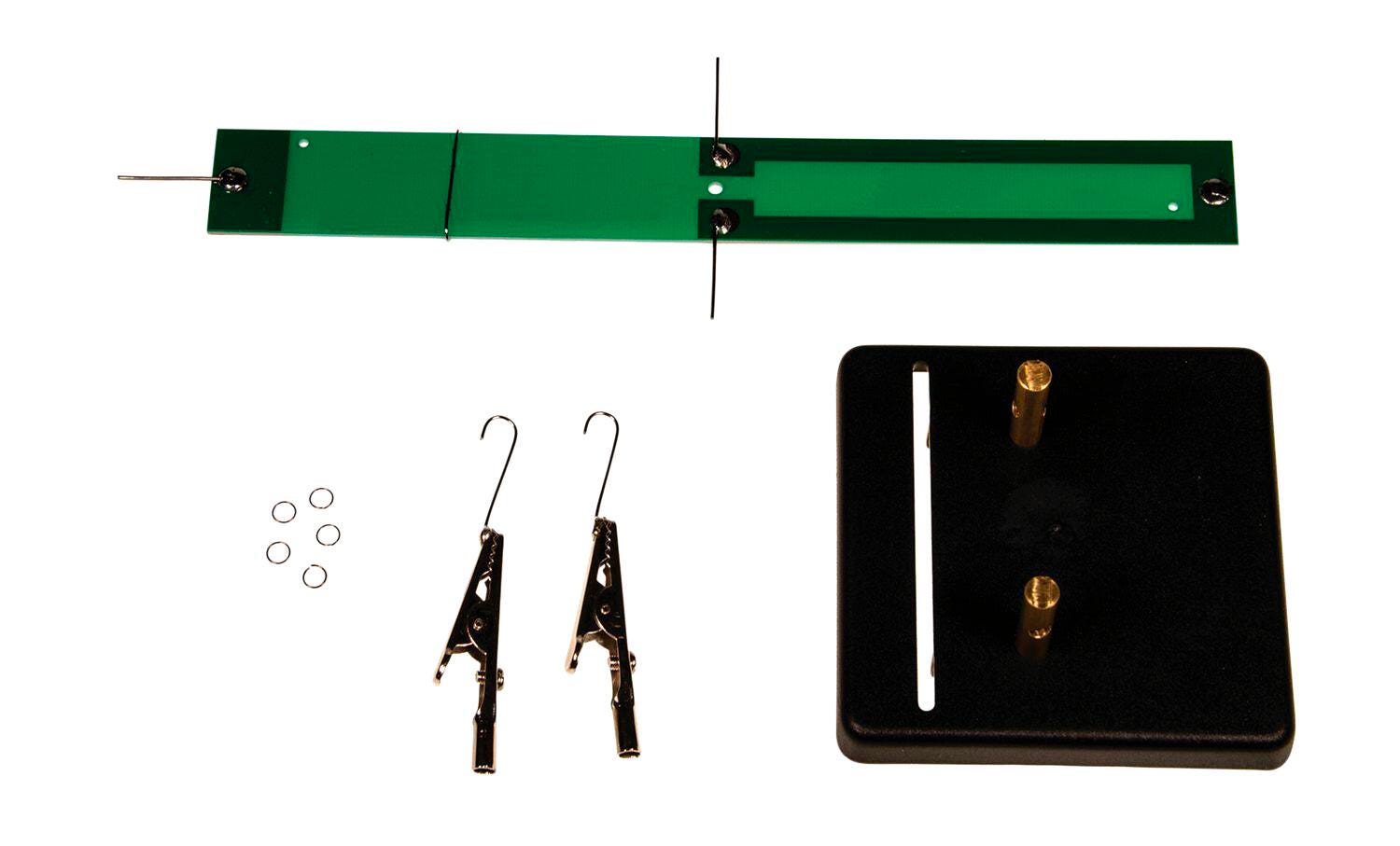 The classic method for demonstrating and measuring the small force experienced by a conductor carrying an electric current in a magnetic field. One half of the balance is placed inside a solenoid (like United Scientific model ACS001). The other half has an adjustable counterweight and can carry light additional masses. When current is supplied to the balance and the solenoid from an external power supply, the balance deflects. Adding light masses until balance is restored allows the force on the conductor to be measured.Includes
