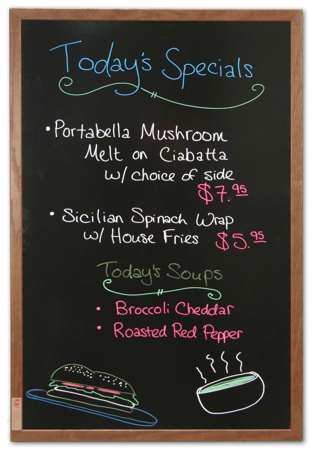 United Visual Products Dry Erase Board with black marker is used for enhancing passion in everyday classroom lessons or messages by using neon colored dry erase markers and is ideal for reception areas or food courts with a ship weight of 54 lb. Melamine board with a satin anodized oak frame, provides stand out eye popping visuals for students and is also recommended for light duty. 96 in x 48 in Durable black board includes a non-magnetic surface with marker tray and a factory mounted hangers.Features
