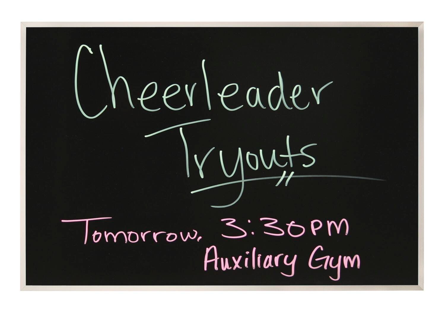 United Visual Products Dry Erase Board with black marker is used for enhancing passion in everyday classroom lessons or messages by using neon colored dry erase markers and is ideal for reception areas or food courts with a ship weight of 21 lb. Melamine board with a satin anodized aluminum frame, provides stand out eye popping visuals for students and is also recommended for light duty. 60 in x 36 in Durable black board includes a non-magnetic surface with marker tray and a factory mounted hangers.Features