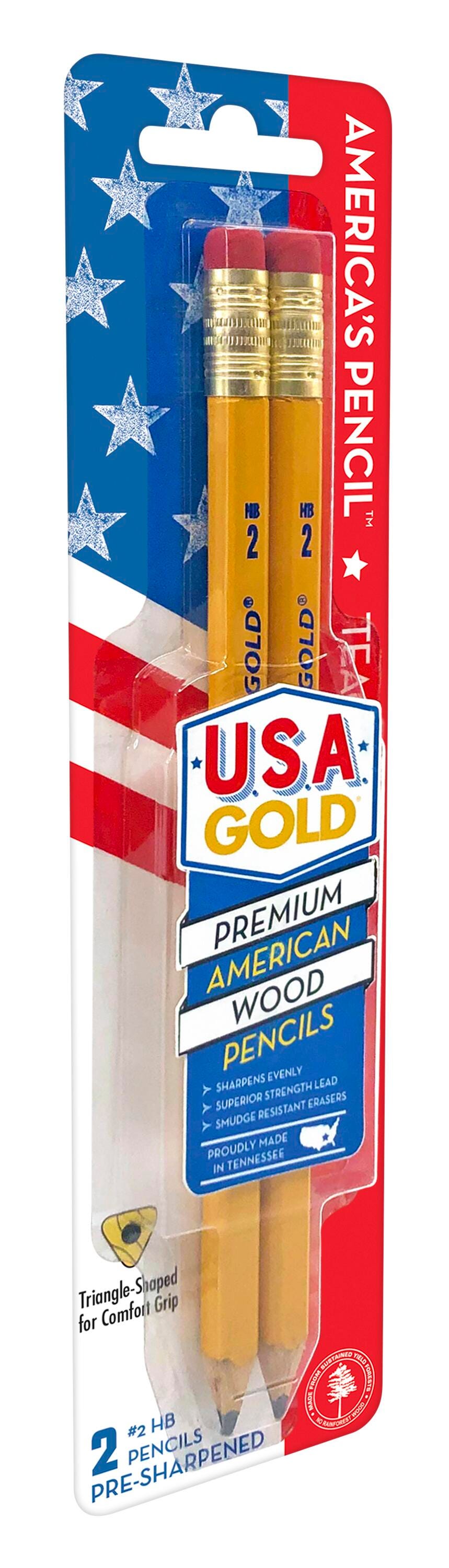 USA Gold Jumbo Pencils, No 2, Triangle Shape, Pack of 2