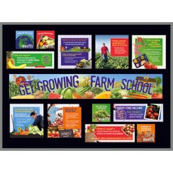 - Get Growing with Farm to School bulletin board kit comes ready to tack/tape and apply to your boards with 14 cohesive locally grown food facts, tips, and photos