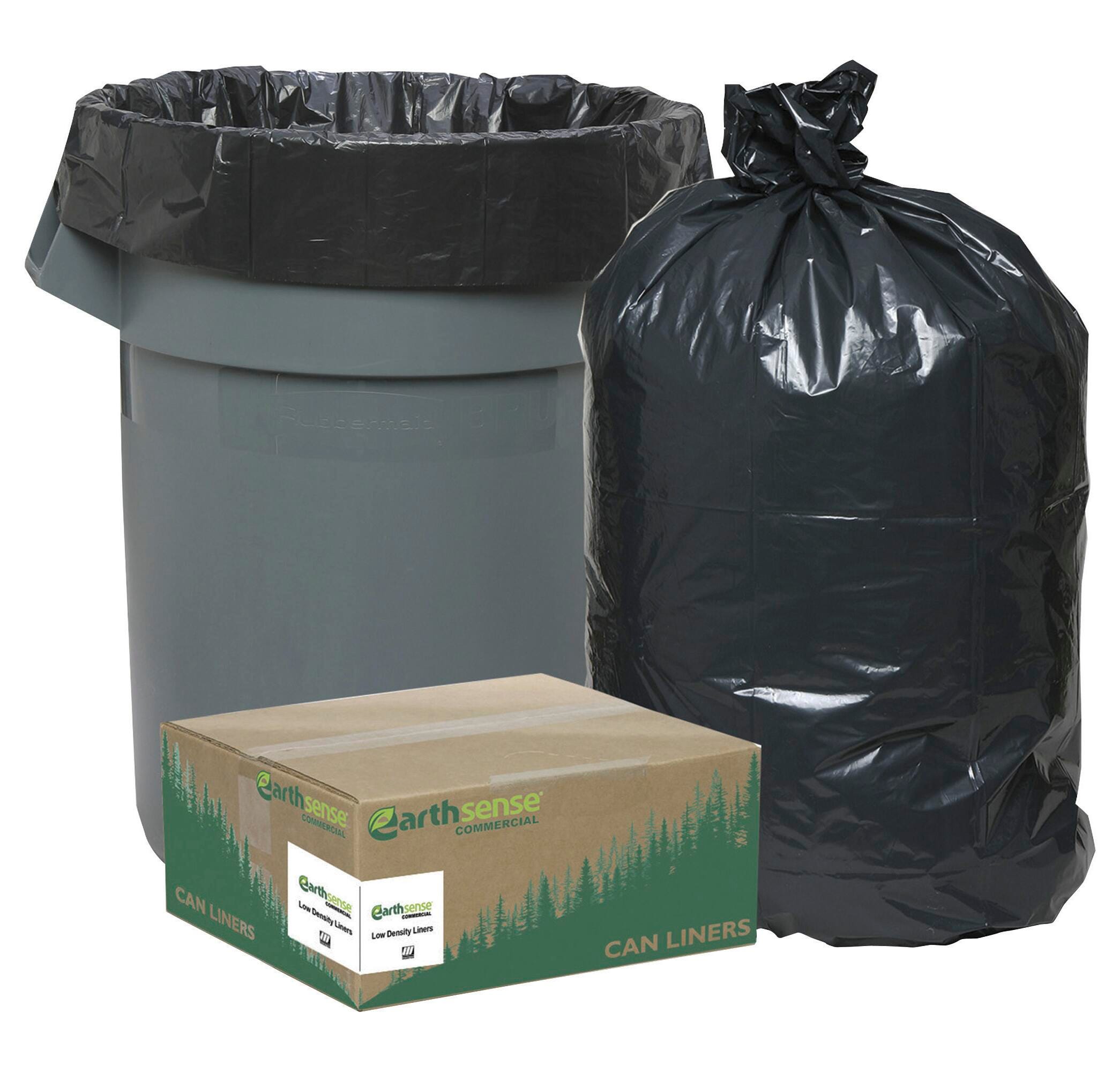 Webster Industries Heavy Duty 0.65 mil Recycled Plastic Trash Can Liner of 7- to 10-gallon capacity features a blend of 75 percent recycled heavy duty plastics and 10 percent post-consumer waste in its construction. Black liners come in easy-to-use dispenser rolls; each measures 24 x 23 inches and is sold as 500 per box.