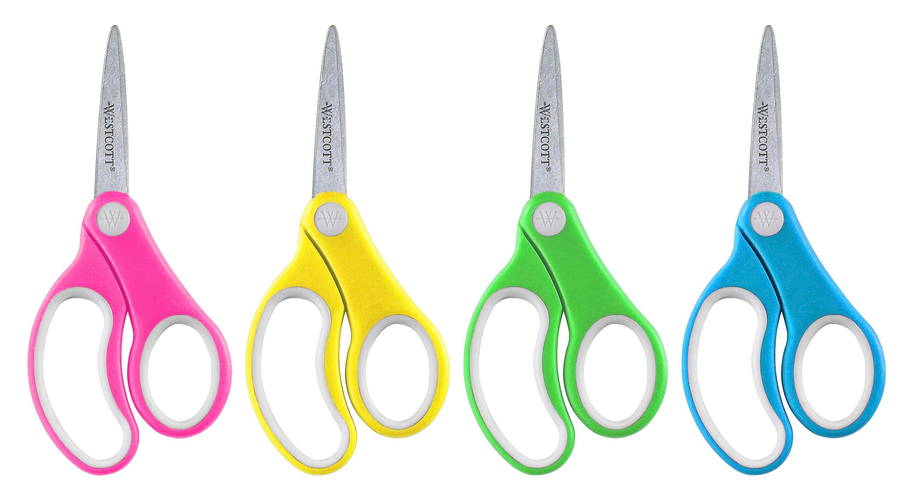 Westcott Kids Scissors are made of stainless steel that makes cutting easy. Scissors feature soft handles that are great for kids, pointed blades for precision, and are fitted for both left and right hands. These 5 inch scissors are designed for ages 5 and up. Assorted colors; colors may vary. Sold as an each.Features