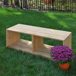 Offer both ample seating and storage for your children outside with the Wood Designs Outdoor Bench with Storage. The bench’s kid-friendly size and rustic design are a great addition to any garden or outdoor living space. The frame is constructed from durable and nontoxic acetylated wood. This type of wood defies the elements in any season from shrinking, warping and rotting. The edges and corners of this piece have been rounded for safety in any outdoor environment. Additionally, all hardware is stainless steel.Features