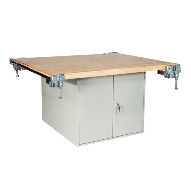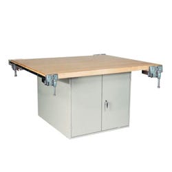 Steel base workbench with hard maple work surface is ideal for educational environments.