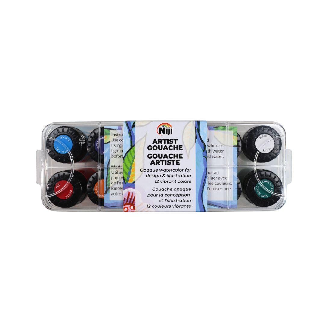 • Yasutomo Niji Artist Gouache, 1/2 Ounce Jars, Assorted Colors, Set of 12