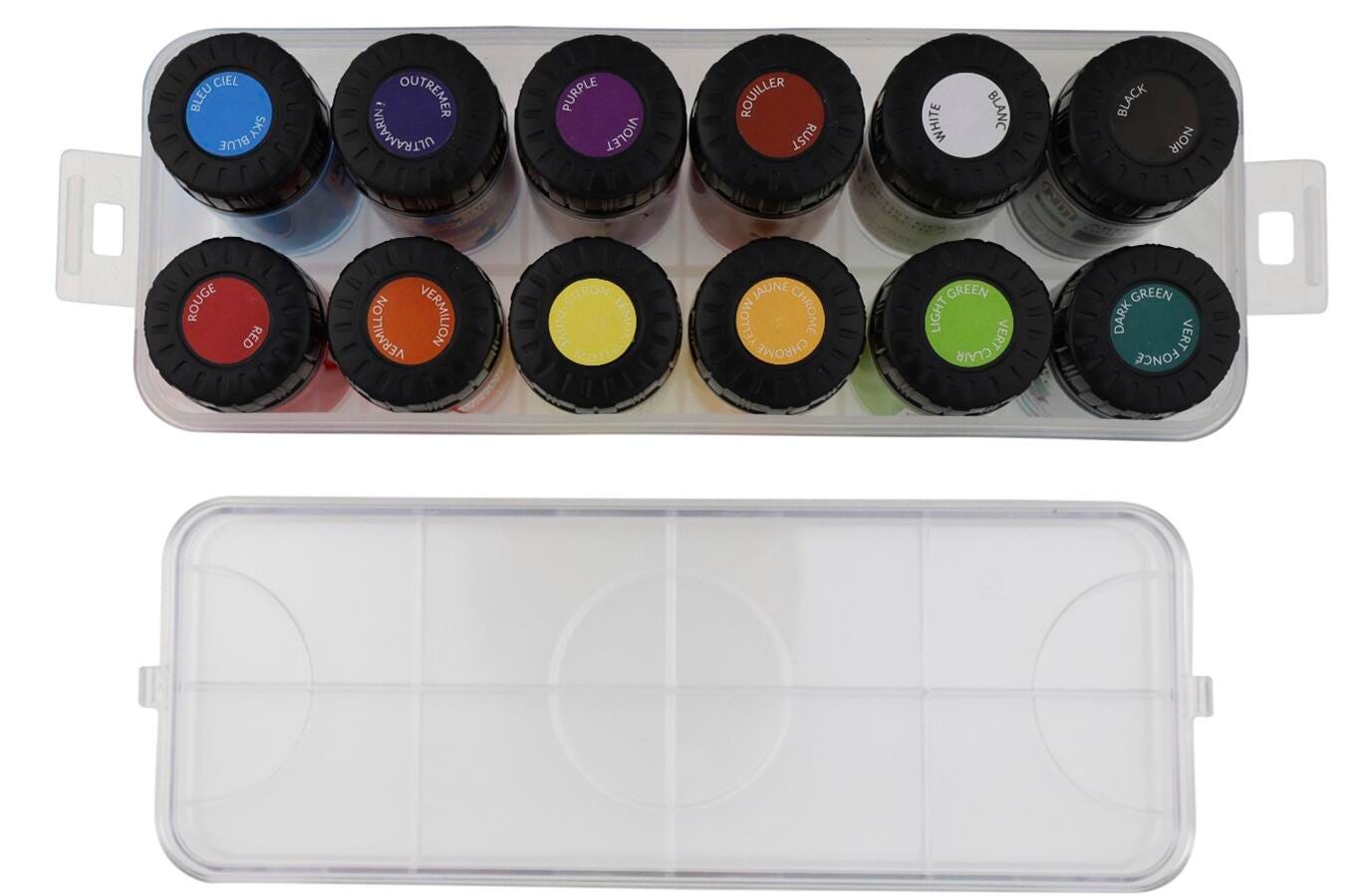 The Niji® Artist Gouache from Yasutomo® delivers a vibrant and highly pigmented painting medium that is great for a variety of painting projects. The paint offers a smooth and creamy formula and its highly opaque and matte finish is great for design and illustration. This set includes 12 jars, with 1/2 ounces of gouache in each jar, in the following colors: red, ultramarine, light blue, blue green, yellow green, lemon yellow, chrome yellow, vermilion, reddish brown, purple, white, black