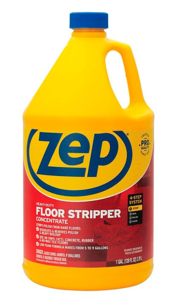 Pro-level hard surface floor maintenance begins with removing the existing acrylic finish. This Commercial Heavy-Duty Floor Stripper goes on quickly with a cotton mop or scrubbing machine and then digs deep to remove stubborn finishes and heavy buildup. The ammonia-free, high-alkaline formula is concentrated so 1 gallon makes 9 gallons of floor stripping solution.