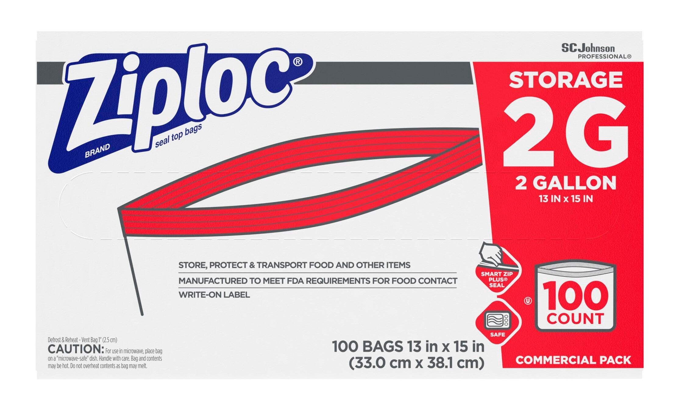 As a trusted name in food and product storage, Ziploc Storage Bags are strong and reliable. The secure seal locks in freshness. The 2 gallon capacity is ideal for keeping a large amount of food fresh, clean and delicious in foodservice operations. Bags are easy to open and easy to fill. Write-on label provides easy identification and date-coding. Bags come in a convenient self-dispensing carton.Features